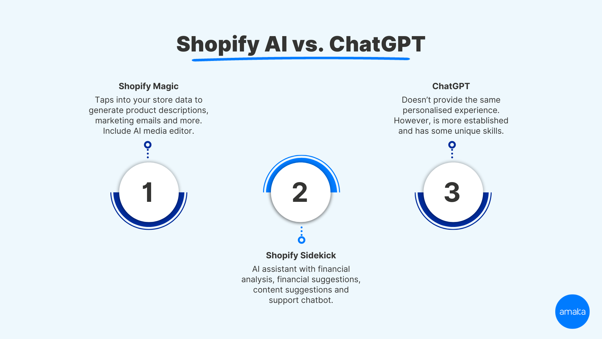 Shopify’s tools do use OpenAI‘s ChatGPT APIs in combination with Shopify’s own proprietary data to bring a chatbot experience more specifically catered to the users of their platform. This means Magic and Sidekick can provide more relevant recommendations and insights for one’s specific store compared to using ChatGPT that possesses generic capabilities.